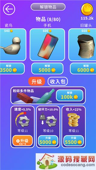 随着生活节奏的加快,随之而来的就是各种各样的生活压力,越来越多的人在找寻解压的正常方法,今天小编就要给大家推荐一款十分休闲的魔性解压小游戏——无敌粉碎机最新版,该游戏虽然不像其他的大作一样,拥有高清的画质,但注重为玩家带来更好的游戏体验,玩家在游戏中将拥有一台无限运作的粉碎机,你要做的就是将生活中各种各样的常见物品拖入粉碎机中,还可以通过粉碎废弃物品来获取经济,继而使用积攒的金币用于解锁更多物件来增加粉碎过程的体验乐趣,目前游戏中为玩家提供了各种各样的物品,其中有马克杯、玻璃瓶、盘子、砖块、木板、马桶坐垫以及小孩玩具等等多个大类,数十种不同的道具供玩家粉碎解压,同时为了配合游戏的逼真的效果,游戏内还设置了真实的效果音,使玩家的视觉与听觉享受得到双重满足,让你更够毫无限制、尽情的玩耍释放身心压力,除此之外,还可以使用金币对粉碎机的速度、破坏力以及收入进行升级,提升运作速度和破坏力可以带来更加爽快的游戏体验。