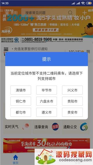 1、在本站下载并安装贵州通app乘公交,进入软件首先选择所在城市