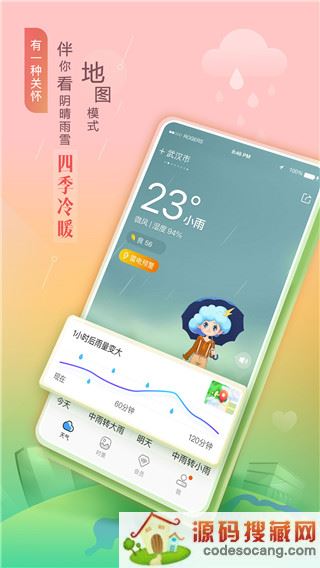 2、短时预报:未来两小时分钟级预报,提供更智慧的场景化服务。