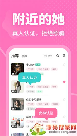 推荐附近的男神女神,显示对方的实时距离和登录时间