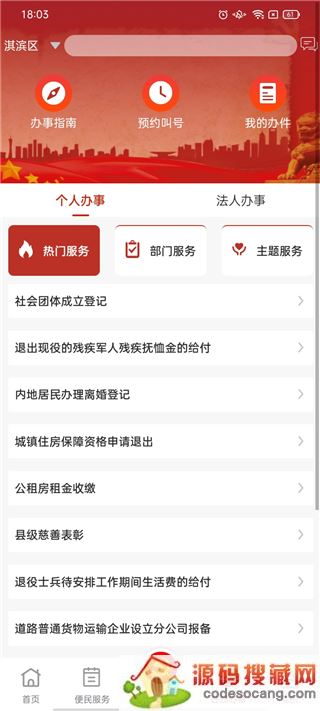 5、另外在线办事板块中,还有着办事指南、预约叫号、我的办件、法人办事、个人办事等。
