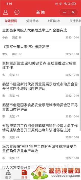 4、在党务板块中,拥有着最新的党建要闻、党建动态、部门动态、学习、互动;