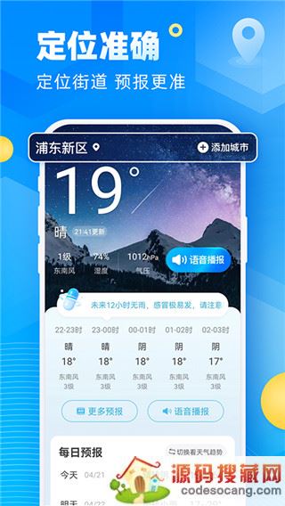 2、【逐小时天气预报】轻松查阅24小时内天气变化,提早预防早晚温差过大;