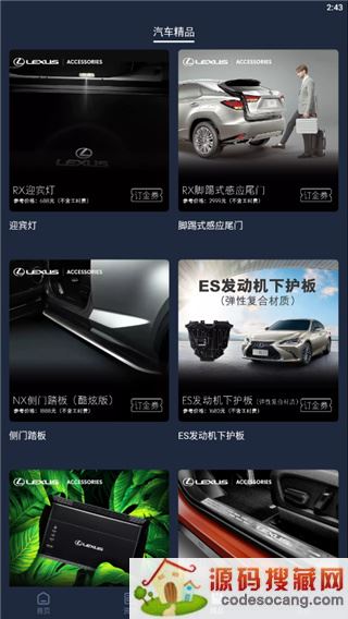 3、精品:查看及收藏雷克萨斯纯正精品,并可联系当地经销店或访问LEXUS雷克萨斯天猫旗舰店购买。
