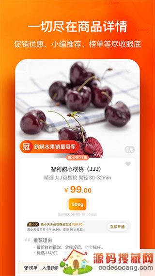 3、查看食材的详情,能够收藏、分享和立即购买这个食材;
