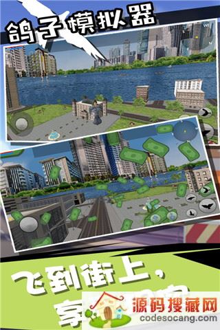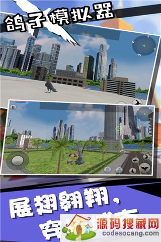 1、以模拟鸽子的视角看待这个世界,各种场景都是以3D的样式模拟现实都市呈现。