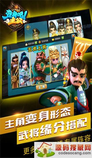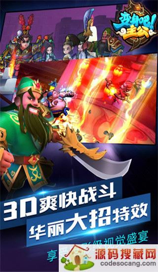 变身吧主公最新版是由西山居重磅推出的一款三国题材3D休闲Q版回合制手游。游戏拥有精美绝伦的游戏画面,以及十分华丽多变的战斗模式,再加上那精彩的历史剧情,让您体验到完全不一样的武将养成系统。萌化的历史剧情、精美绝伦的场景、华丽多变的战斗、动画电影级的剧情动画以及可多形态养成的武将,将带给你前所未有的新鲜卡牌体验。除此之外,这款游戏玩法丰富多样,首次加入了主角变身系统,玩家在游戏中可以根据战役的不同,将主角变身为4种完全不同类型的角色,此设定作为该作的主要特色之一确实也为玩家营造了一种新鲜感。角色培养的方面也是设计的相当全面,变身吧主公官方正版手游中包含天赋、占星、升星、神魔转生等8项角色培养功能,全新战斗表现形式,使整个卡牌回合都不再是单调的双方列队互砍,而是结合了多形态卡牌养成。轻松的玩法,精美的画面,多形态卡牌养成,让你尽情享受萌化三国的乐趣。