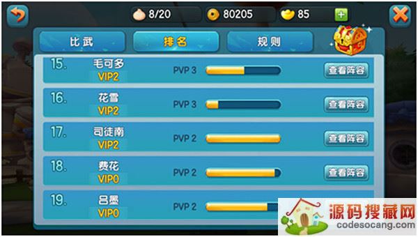 1、每次比武可收到系统随机推荐三名玩家(两名排名相近的玩家和一名排名较高的玩家)