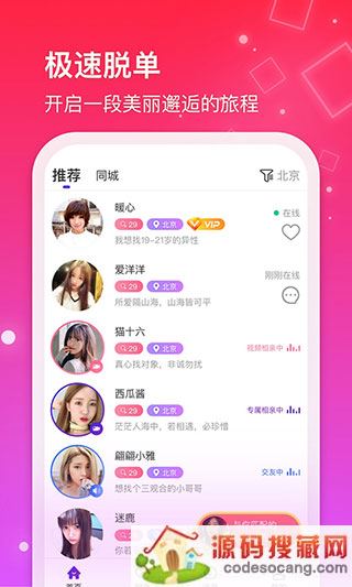 1、【首页】匹配附近有缘人,同城及匹配用户任你选择。
