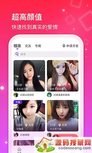 红线相亲app,无论男女都可以来这里进行在线相亲,有专业的红娘坐镇,为你找到那个心仪的另一半,根据你的兴趣爱好,系统会为你推荐类似的人群,然后就可以线上进行社交了,支持视频相亲,还能多人组建一个群组认识更多的朋友,专业化的功能选择一键推荐给你带来更多优质体验,不同的服务功能与简练的ui设计赏心悦目,综合推广全国各地优质单身资源,快速匹配,迅速响应绝对让你满意,最齐全的服务优势在线加入无需会员也能免费享受,平台给大家准备了很多有趣的交友方式,大家可以通过视频结识对方,享受到交友带来的快乐,这样就可以让彼此更加熟悉了解,欢迎有需要的朋友下载使用!