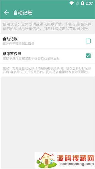 5、最为人性化的是,你可以设置自动记账功能,当之处成功或进入账单详情之外,软件会以弹窗的形式记录账号。