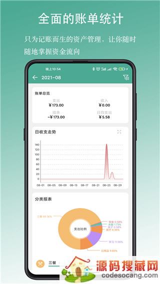 支出、收入按分类可视化统计,支持按日查看,设置预算,更合理地控制消费。