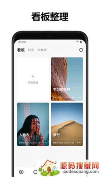 通过看板(文件夹)、标签及四象限等功能整理笔记
