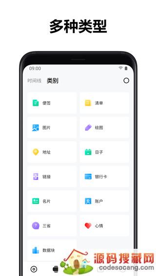提供便签、清单、图片、倒数日、纪念日、心情、链接、地址等14种类型