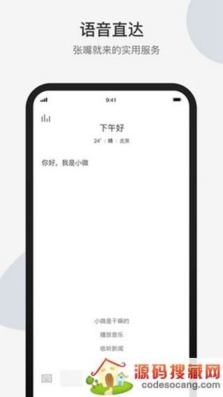 腾讯小微app是一款非常好用的语音智能识别助手应用,软件拥有强大智能识别功能,无论是音箱、电视、玩具、OTT盒子、投影仪还是汽车等居家设备,只需要一个SDK完成接入后用户无需用手启动,直接使用语音直达服务,即可随时随地可唤醒小微,并且软件还拥有QQ音乐、企鹅FM等正版有声资源内容,支持一键点播,登录系统还可同步手机QQ音乐收藏歌曲,家里有孩子的话也可以一键开启儿童模式,早教的同时享受家庭的美好时光,在你无聊的时候还可与机器人进行对话,帮您解闷娱乐,更有各种有声音读物、新闻、笑话、天气等内容与服务,是你的智能居家生活必备的应用,需要的朋友赶紧来下载体验吧!