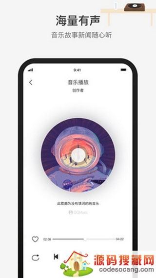 拥有QQ音乐、企鹅FM等正版有声资源,支持点播,登录后可同步QQ音乐收藏歌曲