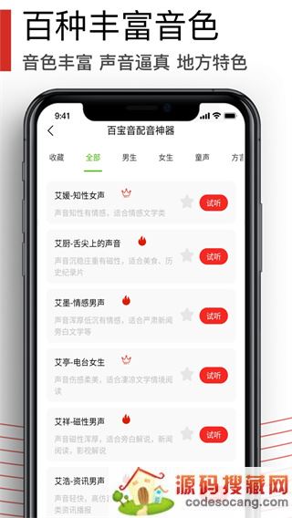 3、支持多种逼近真人的音色,多种声音种类可选:男生,女生,外语,地方方言,童声。