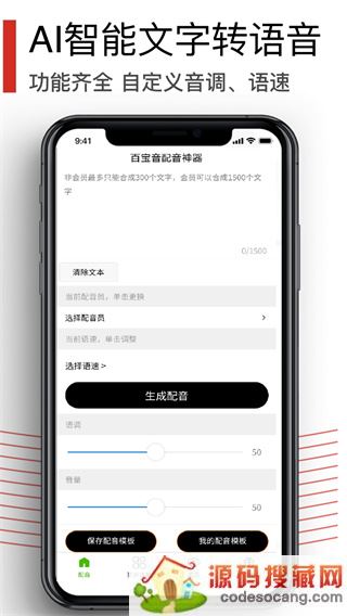 1、只需输入文本,选择音色,还可自定义调节音调,即可生成一段属于自己的配音,功能强大。