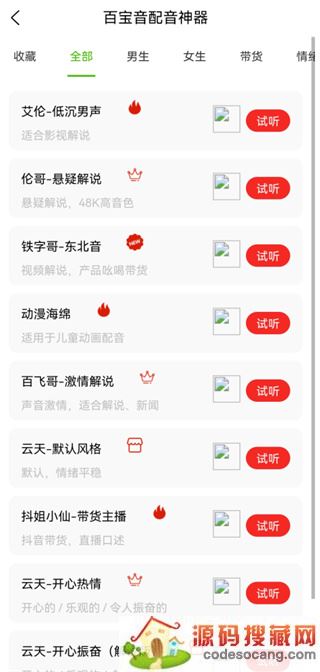 出示摆地摊吆喝配声、商业服务广告配音等多种多样真人版制成品配声。