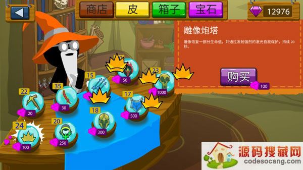 雕像炮塔:雕像恢复一部分生命值,并通过发射强烈的激光自我保护,持续20s。