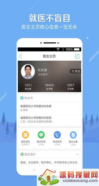 网络预约各大医院专家号,提供短信停诊通知与医院现场接待等贴心服务。
