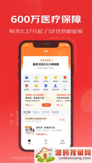 2、保险服务:健康、财产、出行、意外、养老,有保险,更安心。