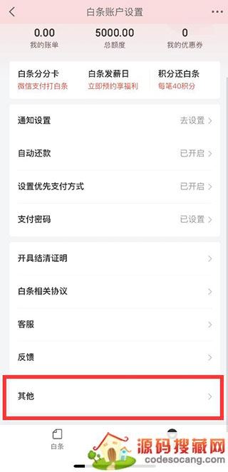 3、京东白条我的账户设置的底部找到【其他】并点击进入。