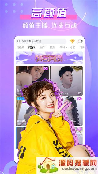 1、[颜值主播] 海量主播,才艺卓绝。唱歌、跳舞、说段子、唠嗑、互动小游戏,气氛嗨、人气足,新潮又好玩。