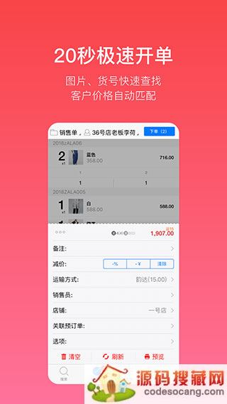 多客app是一款专为服装、箱包、鞋帽等批发档口、零售个体经营户打造移动终端服装进销存软件,这款软件主要由员工来进行操作使用,可以实现诸如手机扫码开单、新品快速入库、盘存、预订单、远程打印、门店调货、个人业绩自动统计、多人协同操作等多种店铺管理功能。并支持手机、平板、电脑全平台使用,使生意高效运转,彻底告别糊涂账!