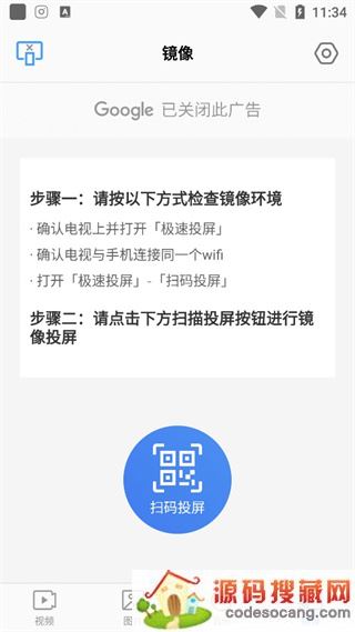 1、打开“极速投屏”手机端app,打开镜像手机界面,点击扫码投屏;