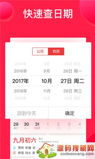 5、万年历查询方便快捷,轻松查询古往今来每一天的历法。包括阳历、农历、宜忌等。