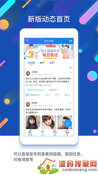 孩子通园所端app是一款专门为幼儿园老师提供幼儿服务的软件,该软件目的是让幼儿园的老师们可以记录孩子的成长历程,让家长朋友们可以通过app了解孩子的学习成长,关注孩子的成长。同时这款软件还能够让家长随时关注到孩子在幼儿园的状况,查看到园所的饮食情况、检测孩子的考勤、了解幼儿园的医务设施、查看孩子的在校表现、接收幼儿园的通知。此外,老师们可以将家长朋友们快速的拉入到群聊中,有任何重要的通知就能够直接发布到群聊中,家长用户就能够轻松的知道通知信息,发布的图片也都会保存到数据库中,实时记录孩子的成长档案,保留更多孩子的成长影像。