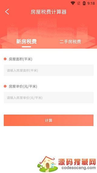 4、大家也可以使用app,去计算房屋税,根据自己买房的类型,选择新房税费或者是二手房税费,依次输入房屋面积以及房屋单价等,即可进行计算,