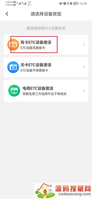 二、选择激活的设备类型,如有卡ETC设备激活;