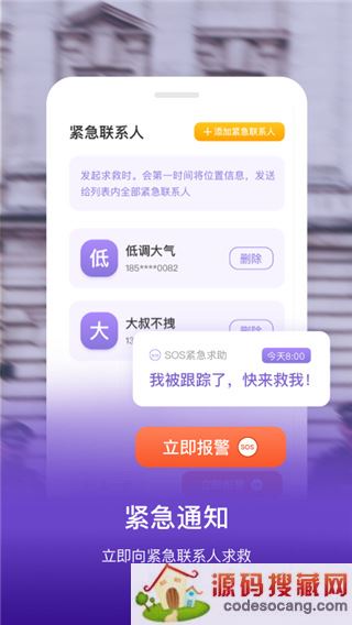 5、支持同时添加多个紧急联系人,让家人遇到危险时能快速发送信息;