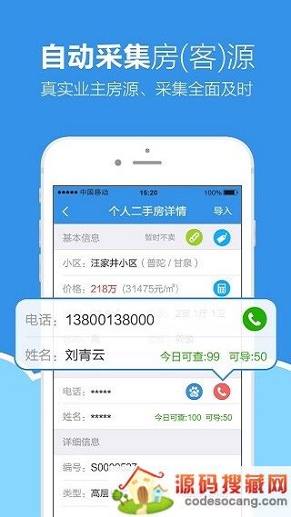 2、支持个人房源采集,随时随地掌握房东网上发布个人房源信息,同时支持一键导入进行管理和业务跟进。