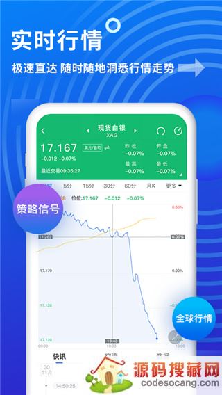1、实时、全面、准确的行情:如黄金、白银、原油、外汇及期货等行情价格变动。