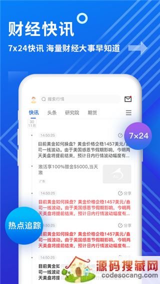 2、全球金融资讯 一手掌控闪电般捕捉市场重大突发事件;实时更新全球金融资讯,市场热点,捕捉突发事件,投资者随时掌控市场最新动态,先机快人一步。
