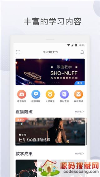九拍陪你练app是天津九拍教育科技有限公司推出的一款独特新颖的乐器练习平台,在这里孩子可以实现自主的乐器练习,有趣又实用,该软件不同于其它的软件该软件采用了陪同练习方式,九拍可以根据你的水平为你找到同等水平的视频内容,如果有错误的话就能清楚的查看,而且如果老师没有在的时候,你也可以观看别人的视频学习并且观看的视频清楚的展示了每一个按键、每一个节奏,除此之外,在九拍陪你练最新版本内学习的时候可以开启麦克风,因为这样就能记录孩子弹钢琴的声音,也就能实现及时的纠正错误,总的来说是一款非常不错的音乐学习软件,有需要的朋友快来本站下载吧!