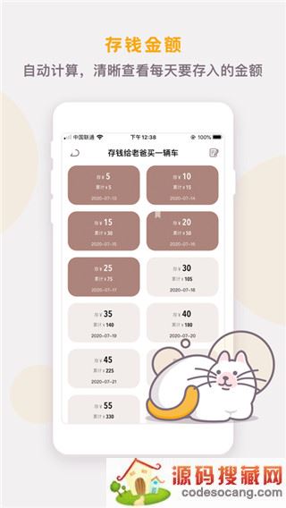 - 存钱模式:根据存钱需求自由选择存钱模式,自动生成每天要存入的金额