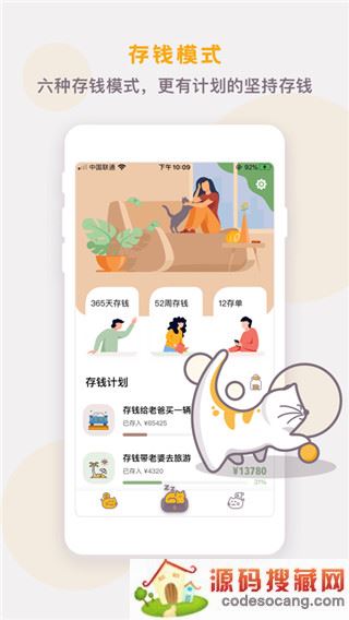 懒猫存钱app6种存钱模式: