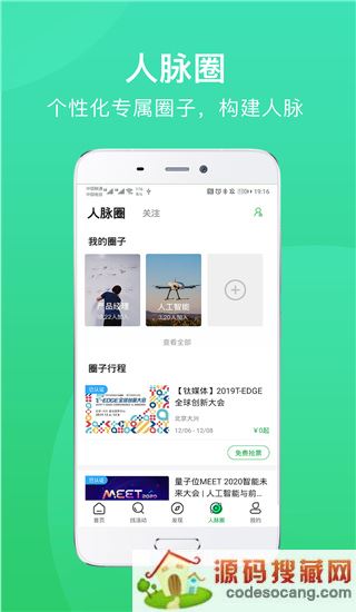 3、人脉圈:精英汇集,随时关注同行动态、热门会议和线下活动,透过活动构建人脉。
