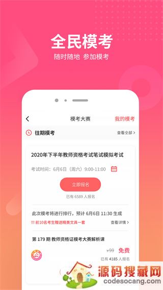 3、全民模考,随时随地都能参加线上考试,与全国各地区教师一起考试竞争