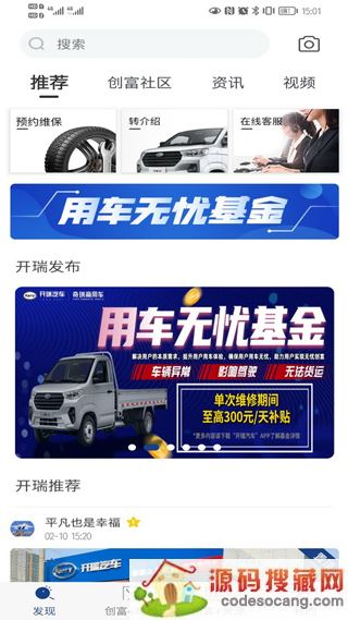 开瑞汽车app是一款致力于为车主创收以及娱乐交互一体式的软件,由安徽奇瑞商用车销售有限公司开发,该软件以车主价值为中心来全面构建创收娱乐体系,包含了超多的汽车资讯、汽车相关的服务以及车主日常关于汽车相关的生活分享。开瑞汽车官方版不仅有超多的关于汽车相关视频,还有很多精美的汽车壁纸,还有很多车主关于汽车使用的相关心得,用户有任何的问题,可以和别的车主讨论,也可以询问客服,其他用户曾经问过的一些热门问题在列表里也会有一个记录。总之,通过这个平台可以满足用户多元化、多维度的圈层需求,实现多元素的深度融合,快来下载体验吧!