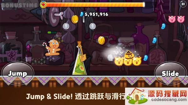 跑跑姜饼人最新版,人气酷跑游戏开跑!你准备好了吗?快来帮助可爱的饼干逃出魔女的烤箱,一同踏上冒险的旅程吧!快从烤箱中拯救可爱的饼干们吧,主角是饼干! 可怕的魔女想把饼干全部吃光! 快趁饼干被放进烤箱烤之前,帮忙它们逃脱吧。游戏操作简单,快帮助饼干们用跑、跳&滑行的方式逃脱,利用跳跃与滑行,获得果冻或闪避障碍物。 只要吃掉游戏中的字母果冻,就能进入BOUNSTIME! 可别错过这个一举获得大量金币的好机会。与好友同乐, 与好友互相较劲排名,让游戏更有趣, 邀请好友加入游戏,还能获得特别奖品哦。许多充满个性的角色, 您没看过、没吃过的饼干&宠物居然有这么多! 除了外观之外,它们也拥有各式各样的能力,绝对让您玩不腻。