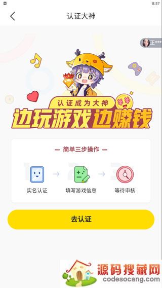 2、用户点进去申请接单页面,申请认证陪玩大神;