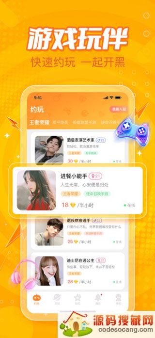 24小时随约随玩,在线1v1连麦,畅享欢乐;