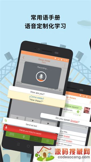 只需选定一个短句,聆听专业录制的指导音频,跟读音频,然后发送录音给语伴!