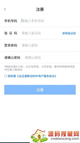 ①未注册用户,需要先进入注册页面完成注册操作;点击登录页面的“注册”进入注册页面。