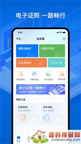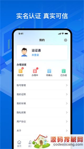 1、用户使用运政通经过实名认证和证件申领后,即可在移动端展示相应证照;